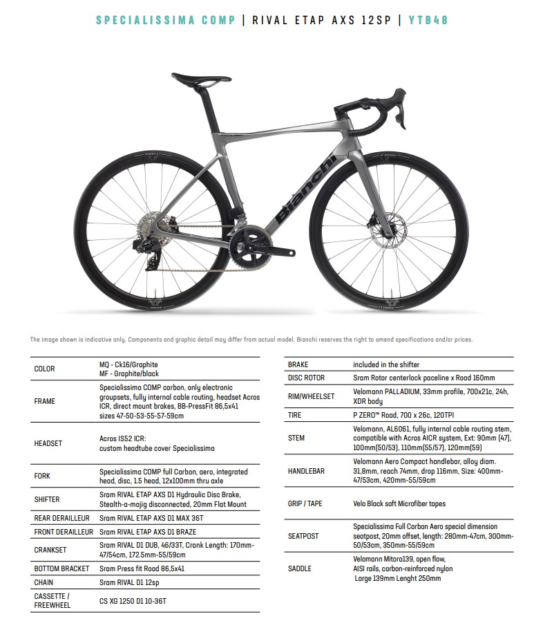 Bianchi Specialissima Comp Rival Axs 53CM Mq Celeste