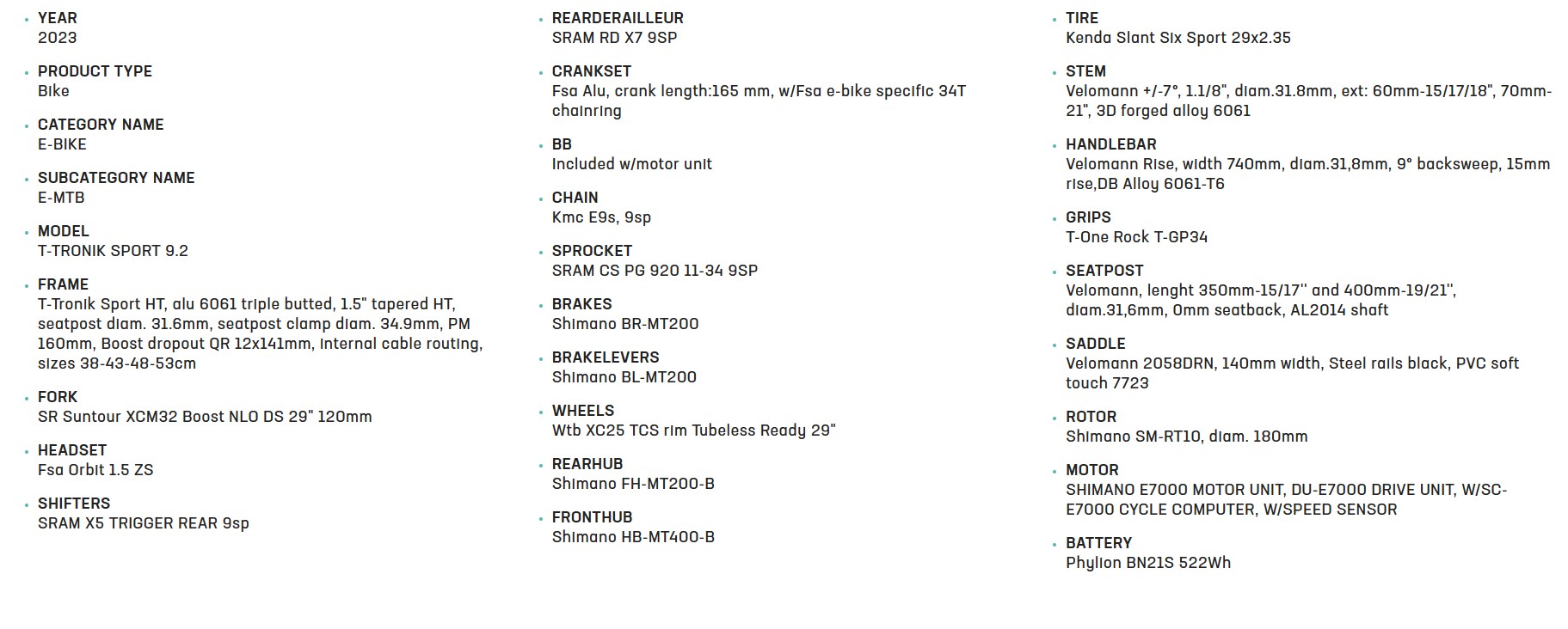 Bianchi T-Tronik Sport 9.2 X5/X7 E7000 48CM E9 Black
