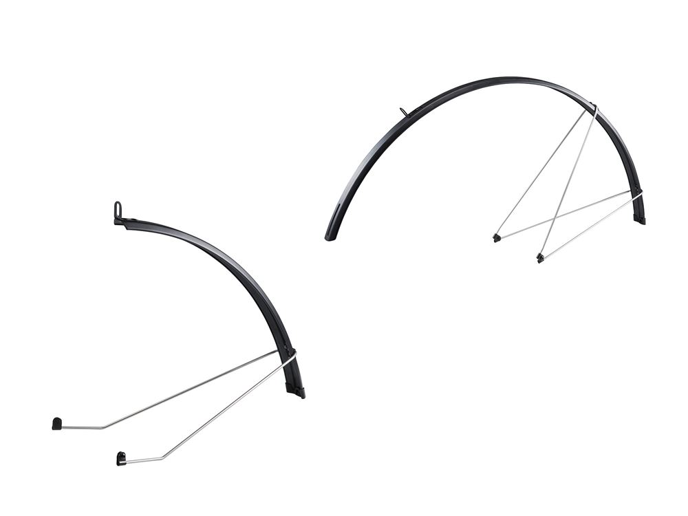 Material: Unbreakable PC constructionFit: 700c x 23-25mm Disc - Defy, Contend and AvailMounting: Bolt fixingFront: Fits to bridge and dropouts of forkRear: Fits to wishbone and dropoutsColour: Black