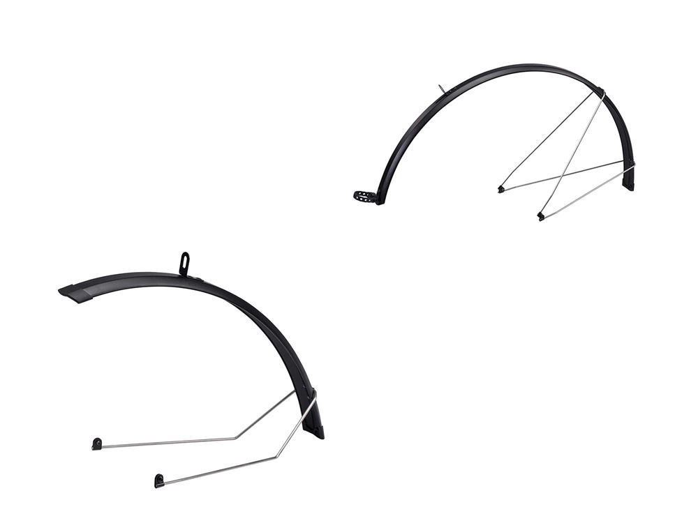 Material: Unbreakable PC constructionFit: 700c x 23-32mm Rapid & FastroadMounting: Bolt fixingFront: Fits to bridge and inner mount of forkRear: Fits to wishbone and dropoutsColour: Black