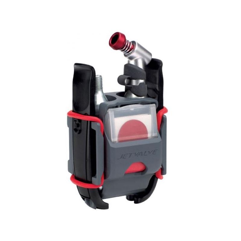 With patches tyre levers a CO2 inflator and spare cartridge the Jetvalve Smart system repair pod contains everything you need to repair a puncture and reinflate your tyre in one handy compact kit.